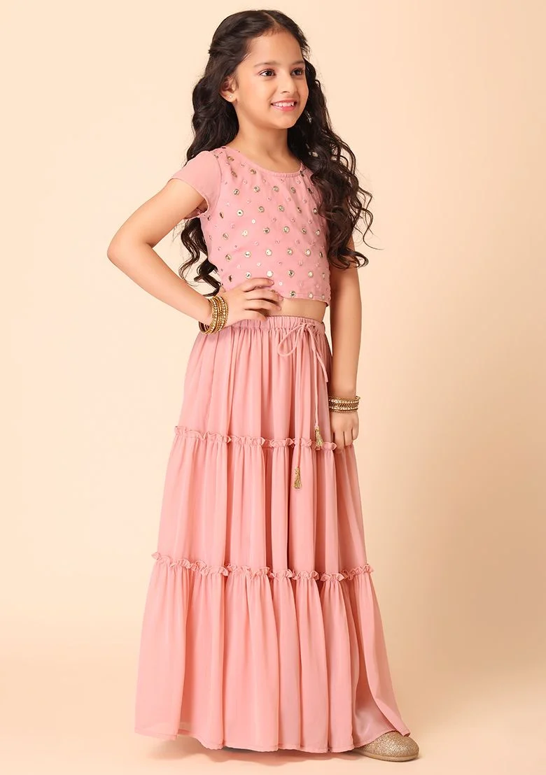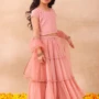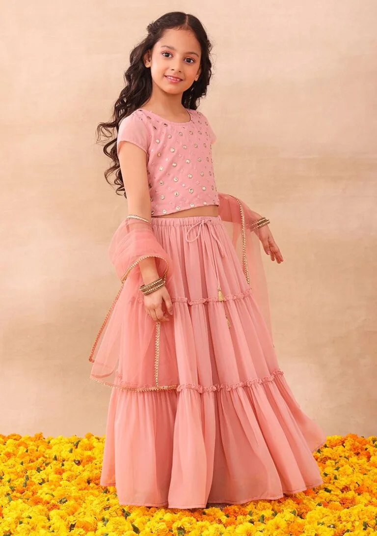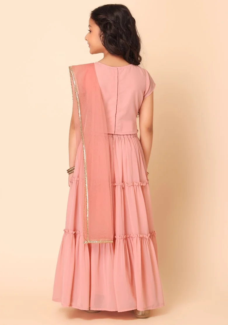 Light Pink Tiered Lehenga With Blouse And Dupatta (Set of 3) – IGS00063