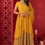 Mustard yellow anarkali kurta in georgette.